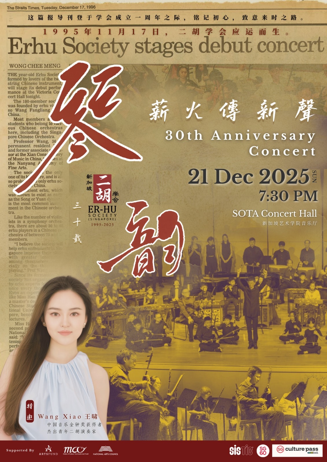 2025年12月21日,二胡学会将在 SOTA 音乐厅隆重呈献30周年音乐会。